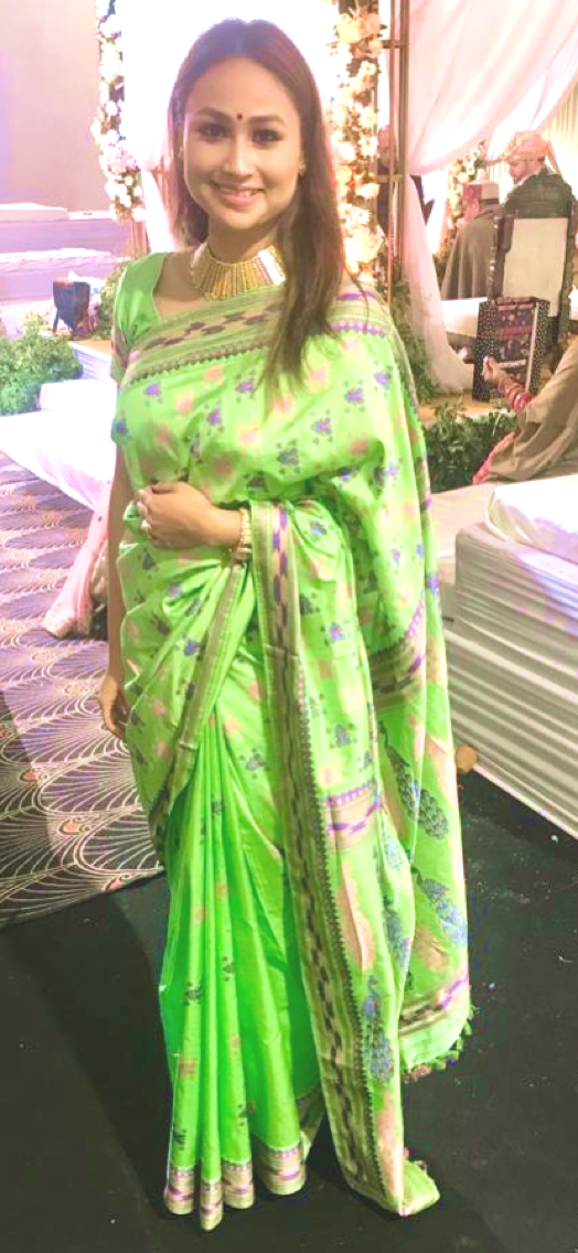 I opted for this sea-green Assam-silk saree, paired with an Assamese traditional choker, sleek-hair partitioned from the center and a winged-liner.