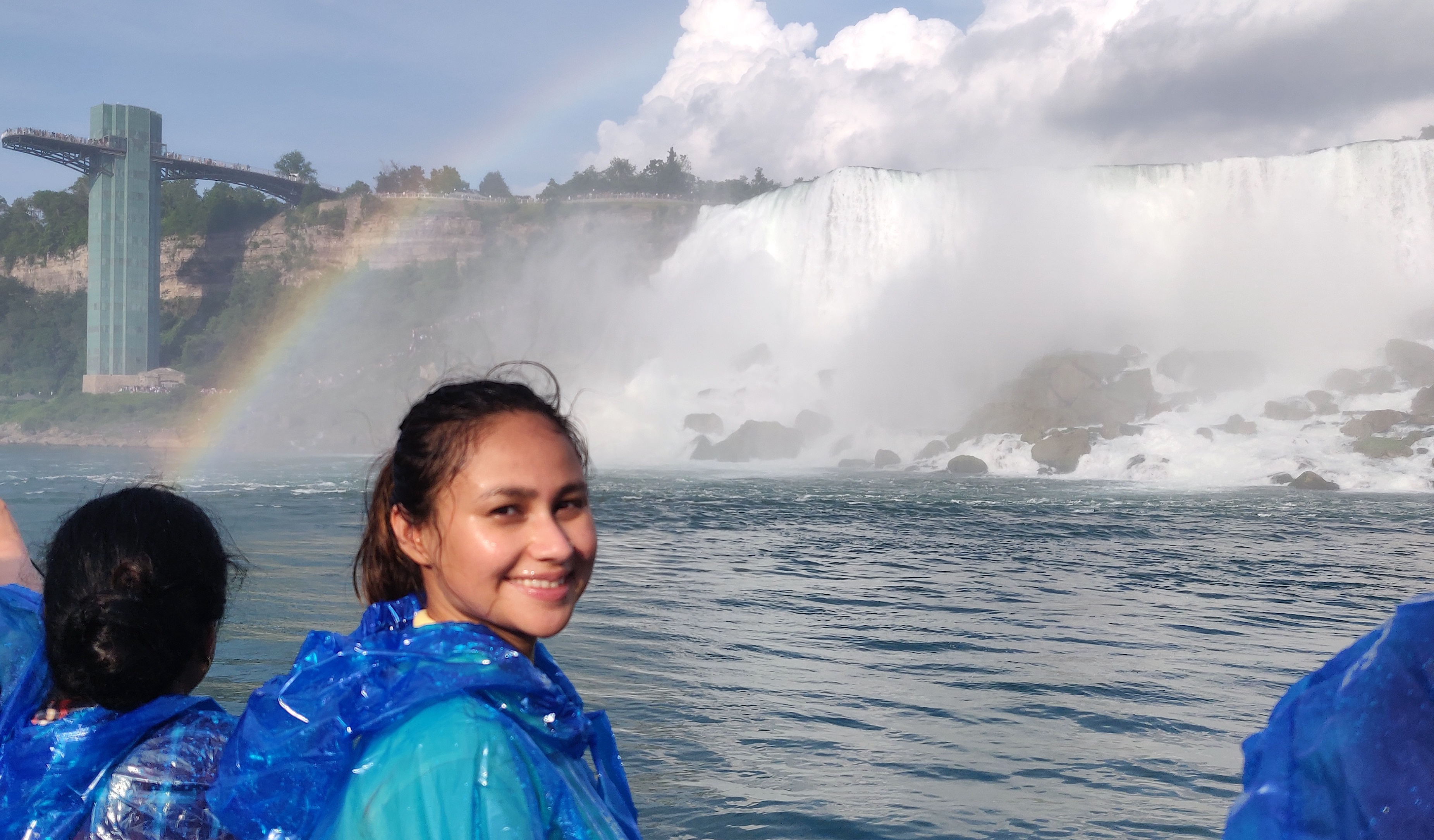 - From there, we headed straight to the Niagara Falls. You can definitely see the falls from its observatory deck; however, I would strongly recommend not missing the “Maid of the Mist” tour. A ferry takes you around the river and you get the closest view possible to the falls. You even feel the mist from the falls (they provide you waterproof ponchos to coverup), which was the most surreal experience for me. I was lucky enough to see the rainbow reflecting brightly in front of it.